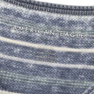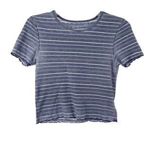 American Eagle Blue Striped Baby Tee Cropped Size M Ruffle Trim Casual Top VSCO