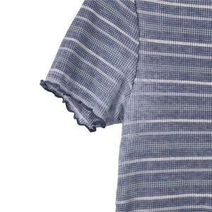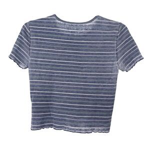 American Eagle Outfitters Blue Striped Baby Tee Cropped Ruffle Trim Casual Top VSCO Y2K Vibes Lightweight Material Stretchy