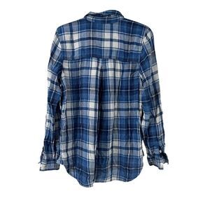 American Eagle Boyfriend Fit Plaid Shirt Blue Button Up Size M Long Sleeve Top