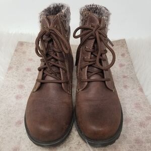 Skid resistant. Faux leather. Size 4. Very good condition. Fun hiking boot.