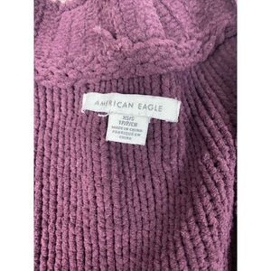 Elevate your wardrobe with this beautiful American Eagle cardigan sweater. The 3/4 sleeve design is perfect for any season, and the cotton and acrylic material provide both comfort and durability. This sweater comes in a lovely shade of purple, making it a great addition to any outfit.