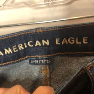 American Eagle Distressed Highest Rise Jeans. Super stretch. Size 0. Dark to medium color blue jeans. Excellent condition.