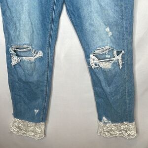 American Eagle Distressed Mom Jeans. Size 6Regular. Has added lace bottoms. Excellent condition.