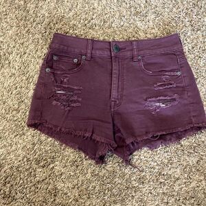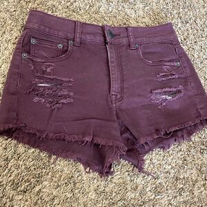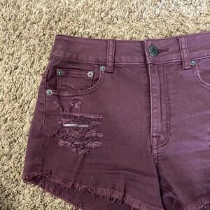 American Eagle Distressed Shorts Size 2 Stretch denim Burgundy color GSR17