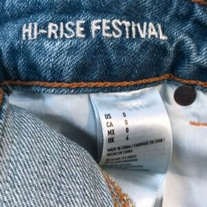 Tags: American eagle outfitters denim Jean shorts jeans cuffed cuffs cuff frills frilly frill destroyed distressed ripped rips rip embroidery embroider embroidered feathers festival style high-rise high-waist high-waisted hi-rise hi-waist hi-waisted high rise waist waisted hi rise waist waisted junior juniors Junior’s women women’s size 0 XS extra small 24.5” waist 24.5 inch inches 24” 24 25” 25