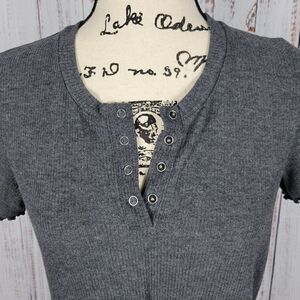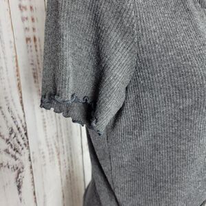 American Eagle Grey Ribbed Small Ruffle Button Casual Short Sleeve Tee Shirt