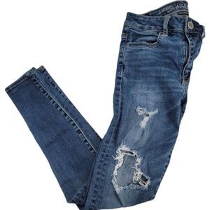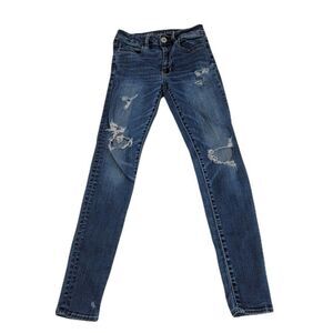 American Eagle Hi Rise Destroyed Skinny Jeggings Womens Size 0 Jean Legg…