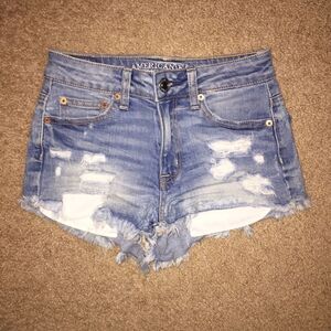 American Eagle Outfitters distressed and destroyed shorts. Size 00 stretch, so it could also fit a 0 or 1. The stock image is very accurate of what it looks like on! Minimal wearing! No stains. No trades.