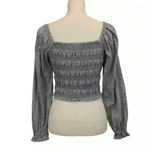 American Eagle Light Blue Floral Blouse Ruched Bodice Long Sleeves Size XS