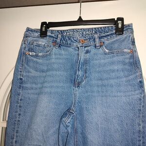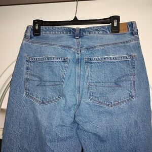 American eagle mom jeans size women's 6 short. They are distressed on the pockets and bottom of the legs great condition.
