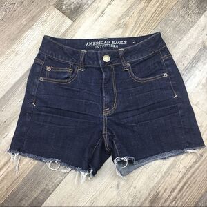 American Eagle Outfitters Super Stretch Size 4. Waist-14”. Rise-8.5”. Hips 18”. Inseam-4.5”