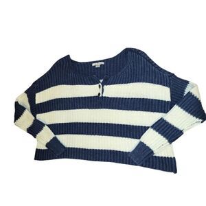 American Eagle Oversized Cropped Blue White Striped Chunky Knit Sweater XS