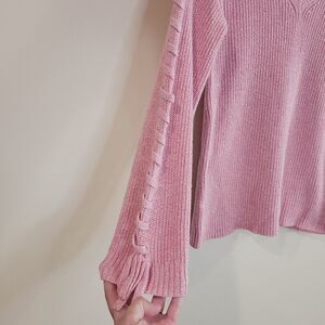 Other: Pink color. Knit fabric. Woven detail down sleeves. V-Neck neckline.