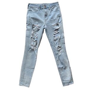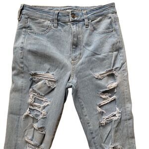 American Eagle Ripped Super High-Waisted Jegging Light Wash Jeans Size 6