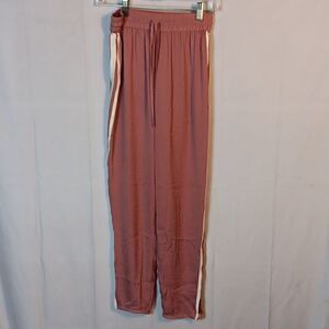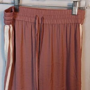 These mauve colored American Eagle Outfitters silky joggers are a size XSmall with an elastic drawstring waist measuring 13" laying flat and an inseam of 30". In excellent condition. All offers are welcome.