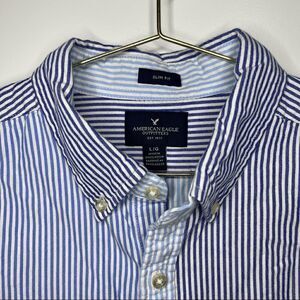 American Eagle Slim Fit Button Front Striped Color Block Shirt