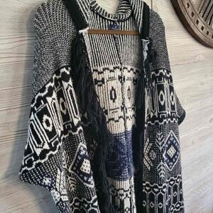 American Eagle Southwest Black Fringe Hoodie Cardigan OSFM Western