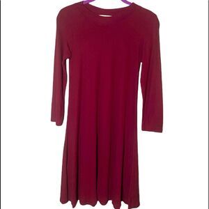 American Eagle Women's Soft and Sexy Sweater Long Sleeved T-Shirt Ribbed Knit Dress size XS but stretchy, could also fit small. Burgundy knit material is 96% Viscose and 4% Elastane. Great preowned condition!