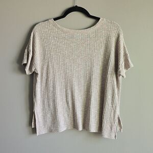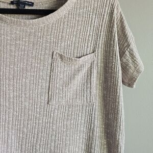 American Eagle Tan Light Brown Ribbed Oversized Loose Fit Comfy Casual Tee Shirt.