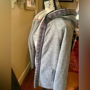 American Eagle Girl’s Zip Up Hoodie. Gray with pink embroidery. Size XS PT