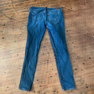 American Eagle dark wash, comfortable, normcore, super skinny jeans. In good, used condition. Approximately 14 inches across the waist, 7 inch rise, and 28.5 inch inseam. From a pet and smoke free house. Happy to bundle!