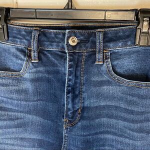 American Eagle super high rise distressed jegging jean size 6 short waist 14” rise 10” inseam 25”
