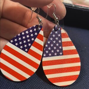 Stylish teardrop earrings with an American flag design. Perfect for patriotic occasions.