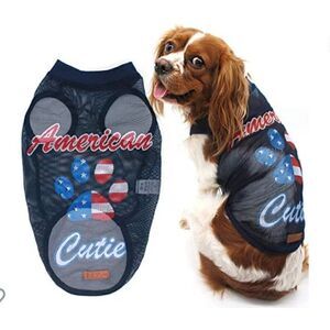 . The American Cutie written USA flag paw-printed dog shirt will stay on your puppy all day because it is made of soft, high-quality fabric