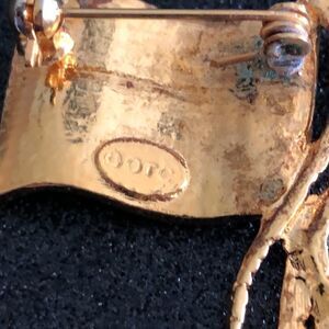American Flag Pin Brooch Gold Tone Rhinestones Red White Blue OTC 1 7/8" x 1 1/4