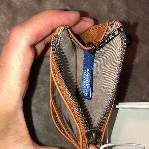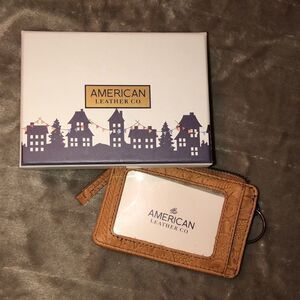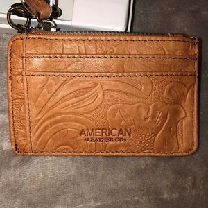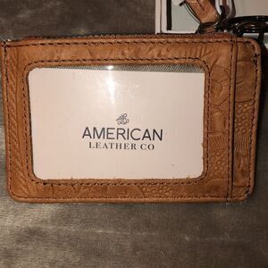 American Leather Co. Mini Tan Camel Textured Leather Floral ID Wallet