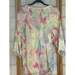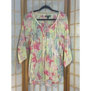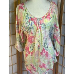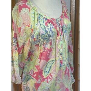 Bright and airy blouse from American Living. Size medium. Tropical vibe. Poets blouse style. 3/4 sleeves. Elastic cuffs. 100% cotton. Made in India. Machine washable. Excellent condition. Nonsmoking home.