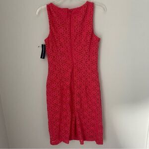 American Living Women’s Scoop Neck Sleeveless Lace Detail Hot Pink Sheath Dress