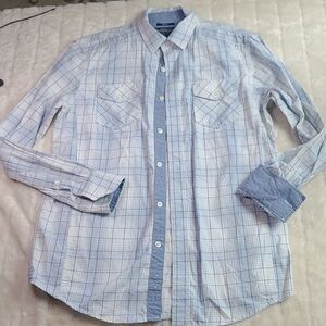 American Rag Blue & White Plaid Long Sleeve Shirt