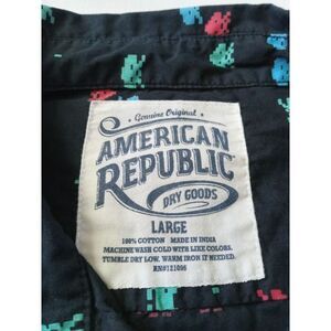 American Republic Black Space Invaders Pattern Button Front Shirt Men's Large