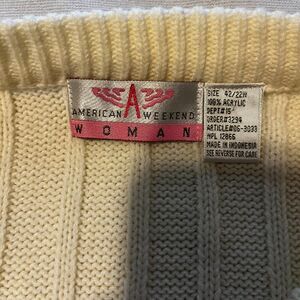 American Weekend Woman's Cream White Sweater. Size 22W. There's a lot of stretch. Pit to pit stretches to about 40 inches. Beautiful, soft Oversized Cable Knit Sweater. 100% Acrylic. Excellent pre-owned condition, no noted flaws. Cream white color. Vintage brand American Weekend