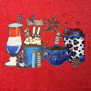 Americana 4th of July Coffee and Shakes Red Tee Medium