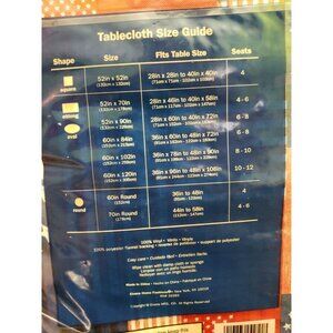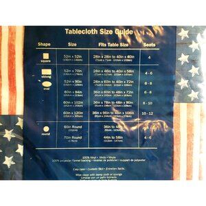 Size 52" x 70" Oblong fits rectangular shaped tables sizes 28" x 46" to 40" x 58" (see Tablecloth Size Guide pic)