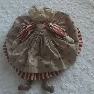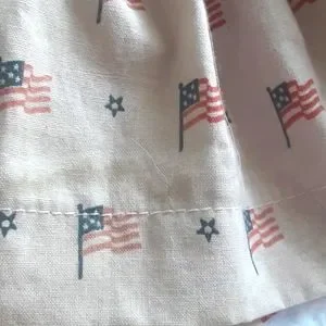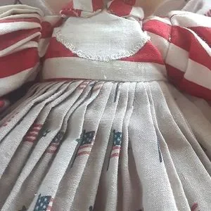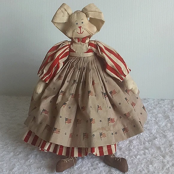 Cute bunny in a striped dress w/pleated apron & American flags