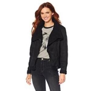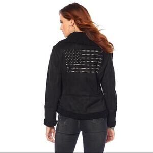Americana Studded Faux Suede Sherpa jacket-Black Medium