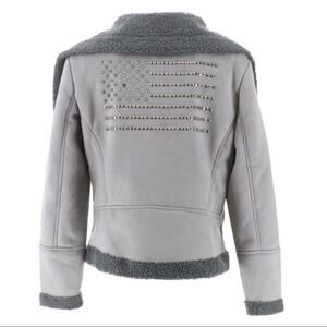 Americana Studded Faux Suede Sherpa jacket-Gray Medium