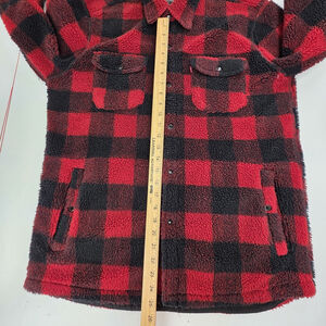 Excellent pre-owned condition. Sherpa remains full and insulating with strong color contrast throughout the plaid pattern. No major flaws observed.