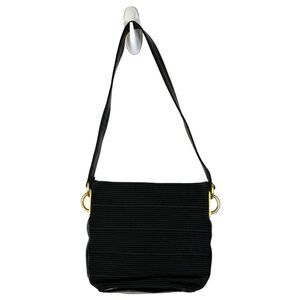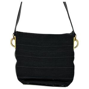 Americana by Sharif Black Ribbed Patent Leather Gold Chain Crossbody Purse