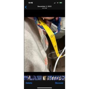 Used bag in very good condition. No tears or rips that I could find. Two full zippered pockets inside. Small zippered pocket on outside. Two handles.