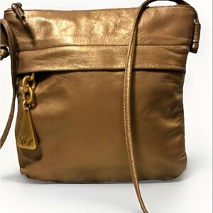 Americana by Sharif bronze/copper color crossbody bag with zipper accents
