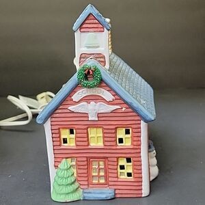Americana Porcelain Collectable Red School House Building Christmas Village