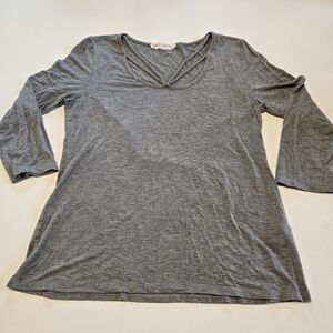 Americanable Gray Women's 3/4 Sleeve Top With Scoop Neck Detail