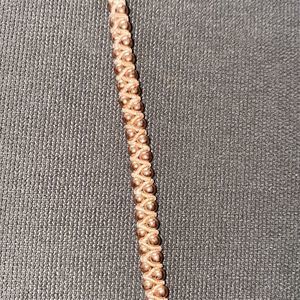 This is a beautiful rose gold color and has some wear on inside of bracelet (shown)