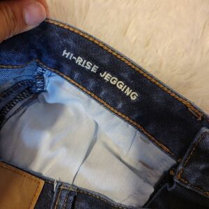 High rise jeggings. Very stretchy. Has stretched out area by groin. Size 0 short.