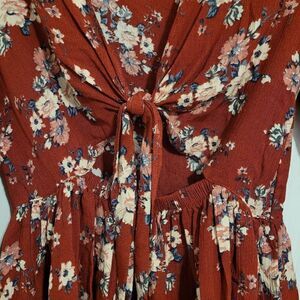 Super cute top. Low cut with tie front. Zippered side. All viscose materials. Lightweight and flowy. Tag says size XS.