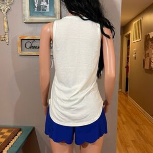 Upper soft ivory tank with American flag longhorn bullhead cow skull.